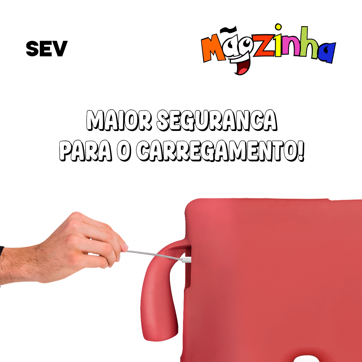 Fabricada em espuma E.V.A super resistente, essa capa oferece proteção contra quedas, impactos e arranhões, ideal para o uso diário das crianças. Com alças em formato de braços, ela facilita o transporte e também pode ser usada como suporte para assistir vídeos, jogar ou estudar com mais conforto.